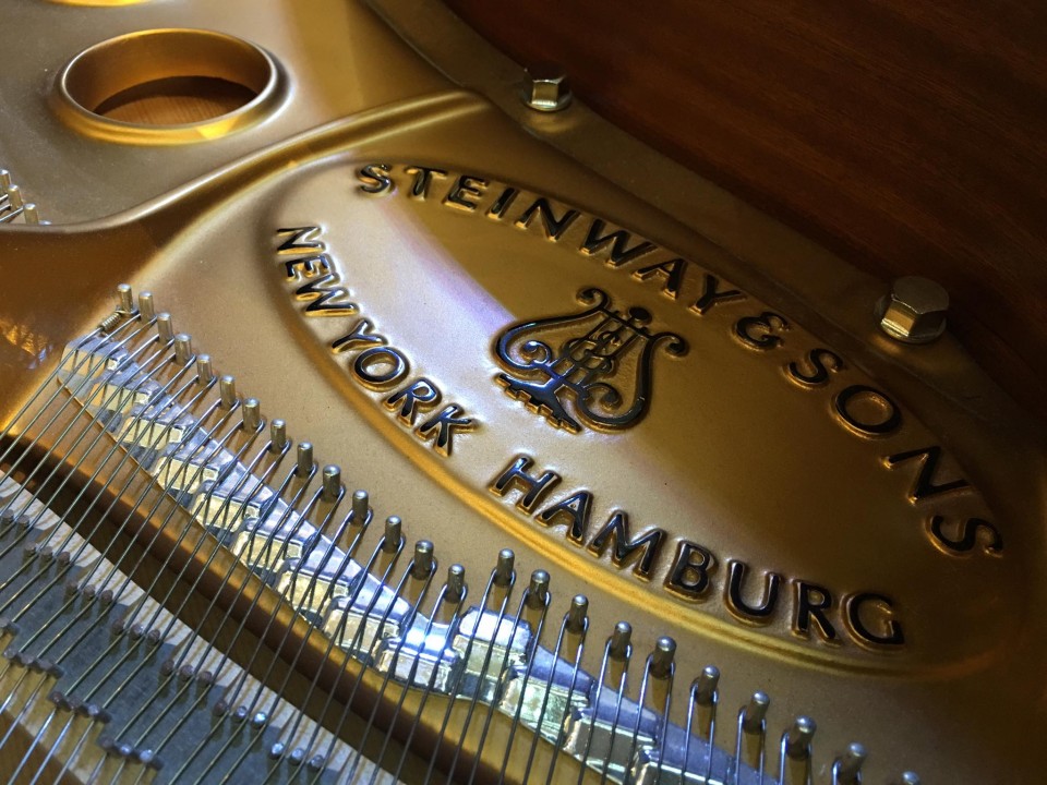 Steinway Gallery Singapore Clearance Sale 2016, Steinway & Sons logo on the iron frame inside the piano