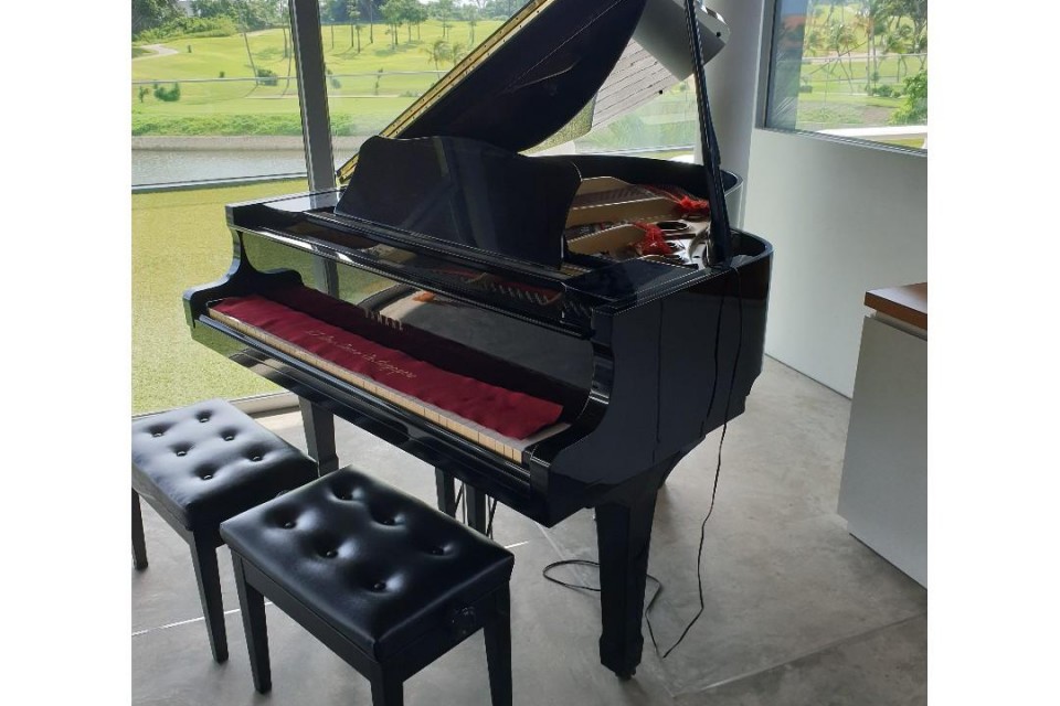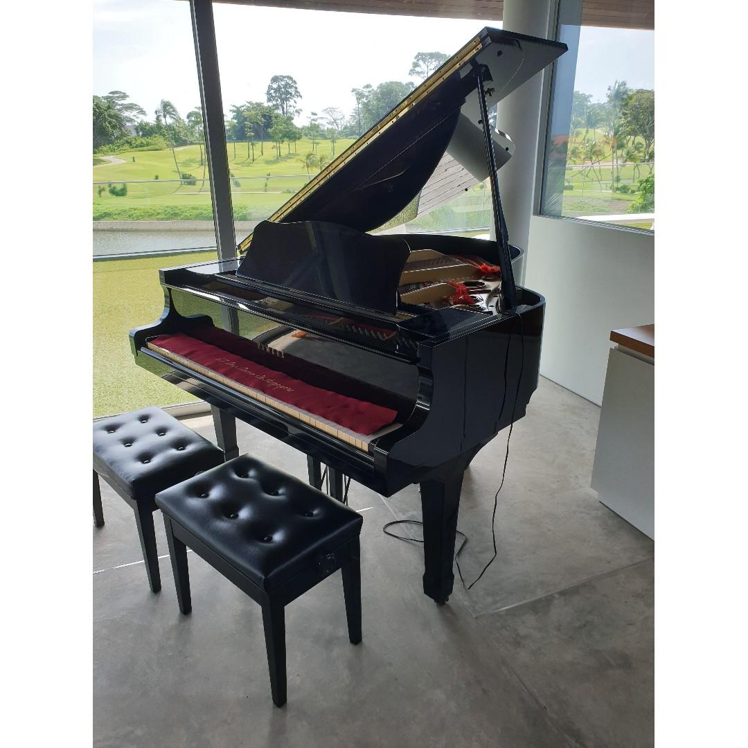 5'8", black ebony, Yamaha G2 S# J4130332 made in 1985, Hamamatsu, Japan. Very good condition, hardly ever played. Includes 2 adjustable piano benches. The G2 is a piano with an amazing reputation and it continues to be preferred. over cheaper and lesser quality GBs as well as GC series pianos. We are sadly letting go after this Christmas due to limited space.